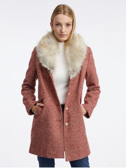 Palton roșu pentru femei cu model și blană artificială ORSAY