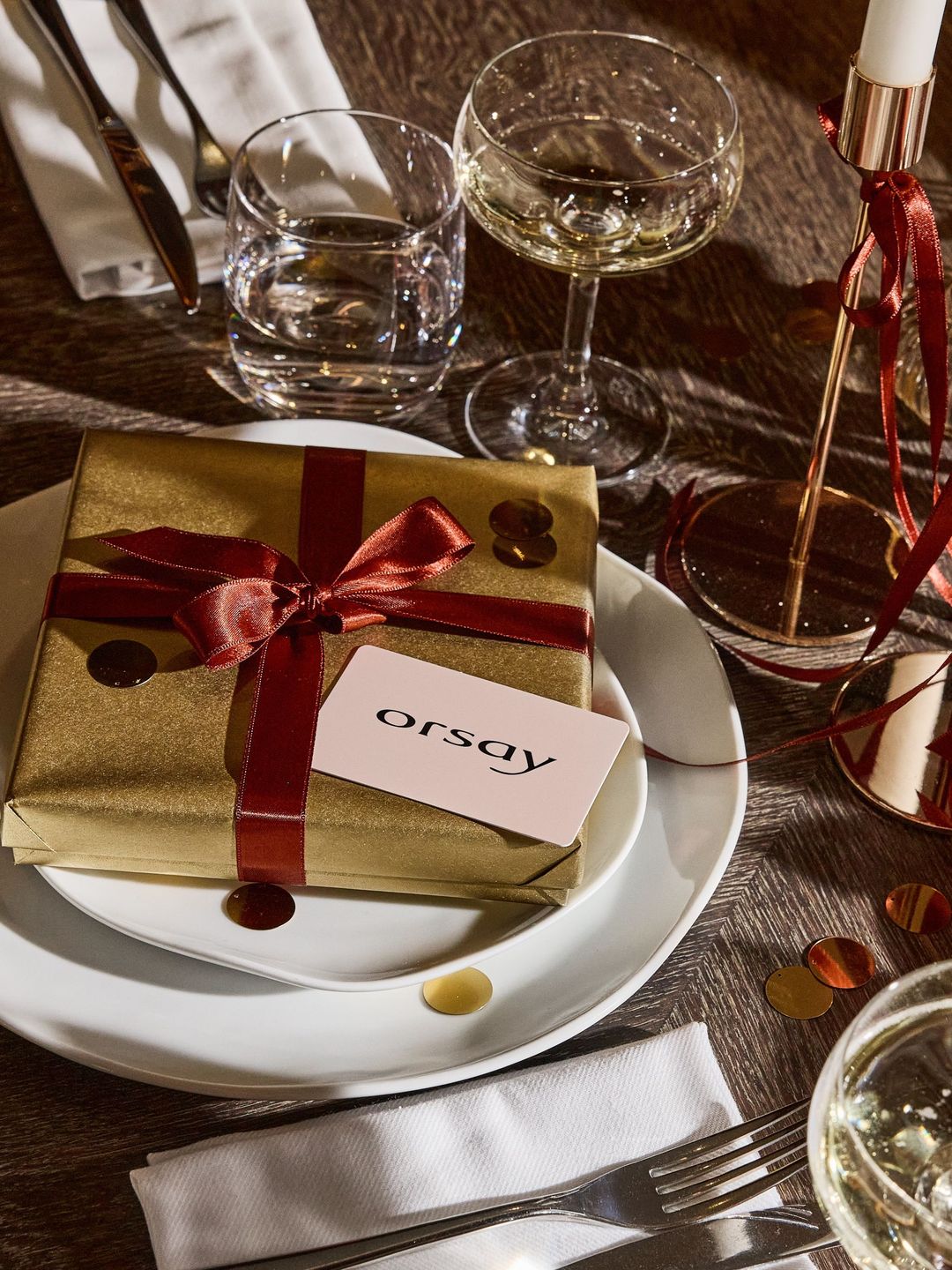 Îți vom trimite un voucher electronic prin e-mail în format PDF, după ce l-ai comandat și plătit. Voucher-ul poate fi valorificat o singură dată și nu poate fi combinat cu un alt cod de reducere. Dacă întreaga valoare nu este cheltuită, suma rămasă nu va fi compensată. Nu se aplică coduri de reducere pentru achizițiile prin voucher electronic. Utilizarea este posibilă numai pe magazinul electronic orsay.ro